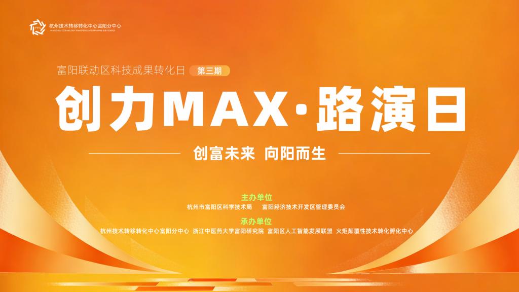 近日,由富阳经济技术开发区管委会主办,杭州技术转移转化中心富阳分中心、浙江中医药大学富阳研究院、火炬颠覆性技术转化孵化中心承办的“富阳联动区创力MAX·路演日”圆满举行。活动聚焦生物医药与智...