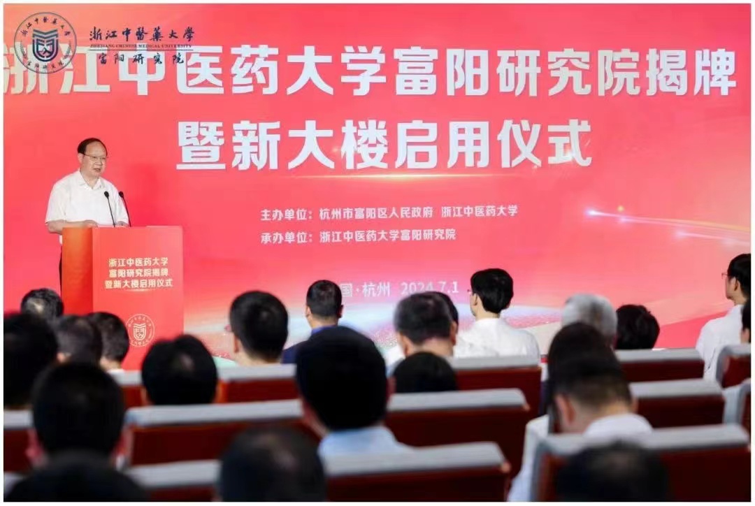 7月1日,浙江中医药大学富阳研究院揭牌暨新大楼启用仪式在富阳区生物信息产业园圆满举行。中国科学院赵国屏院士,欧洲中国传统文化科学院院长蒋玉林院士,浙江省教育厅总督学陈仁坚,浙江中医药大学党委书记黄文秀、校长陈忠以及富阳区领导谢渐升、何献忠等领导出席此次仪式。