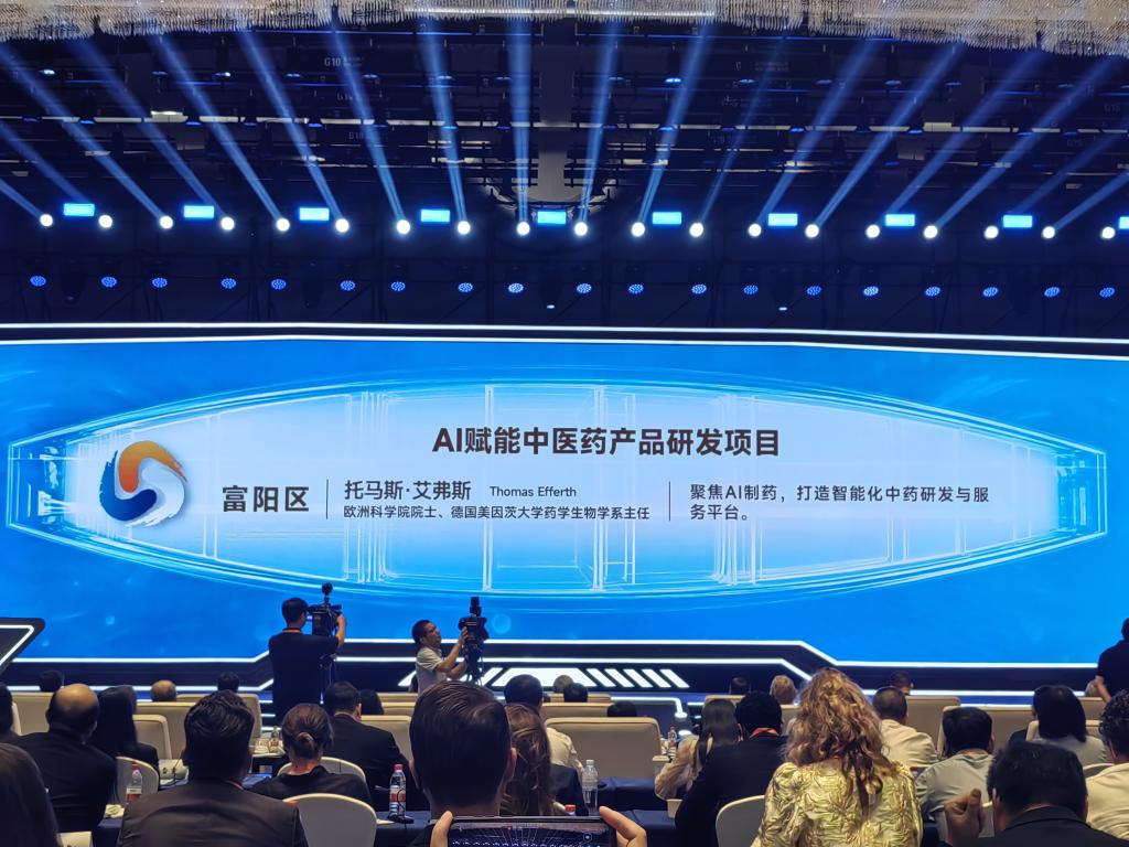 活动伊始,全国人大常委会副委员长、中国科学院院士丁仲礼,浙江省委副书记、省长刘捷,浙江省委常委、杭州市委书记刘非分别致辞;欧洲科学院院长、中国科学院外籍院士Donald Bruce Dingwell代表外宾致辞。活动现场,富阳区委书记王牮与Thomas Efferth院士交换了重点人才合作项目文本。该项目聚焦AI制药领域,以打造智能化中药研发与服务平台为核心目标,旨在推动中医药产业与前沿技术的深度融合。此次合作标志着双方将在AI赋能中医药产品研发领域深化合作,共同推动现代中医药产业在富阳的深耕发展。