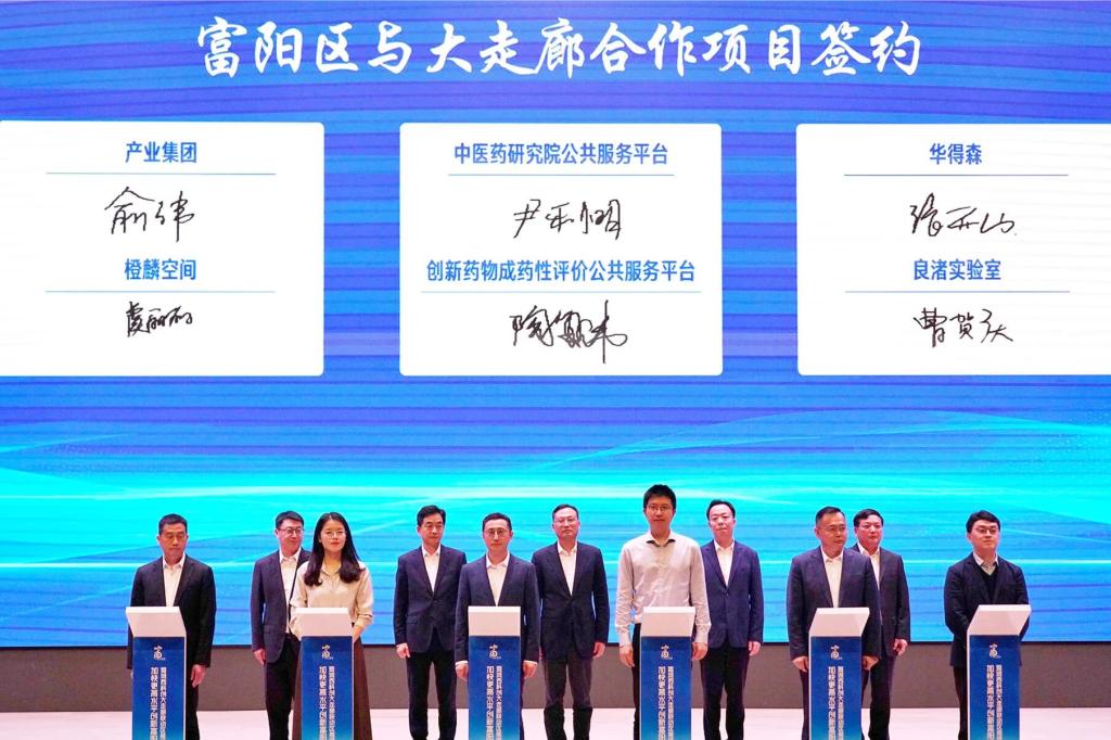 在大走廊与联动区创新生态合作签约环节,研究院下属市场化运营主体浙中双百科技(杭州)有限公司与城西科创大走廊创新药物成药性评价公共服务平台签约,双方将互通科研设施与技术资源,共建智库与联合攻关机制,打通创新药物与健康产品转化通道。